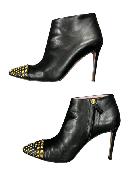 Smooth Leather Booties-Gold Studs-3" Heels